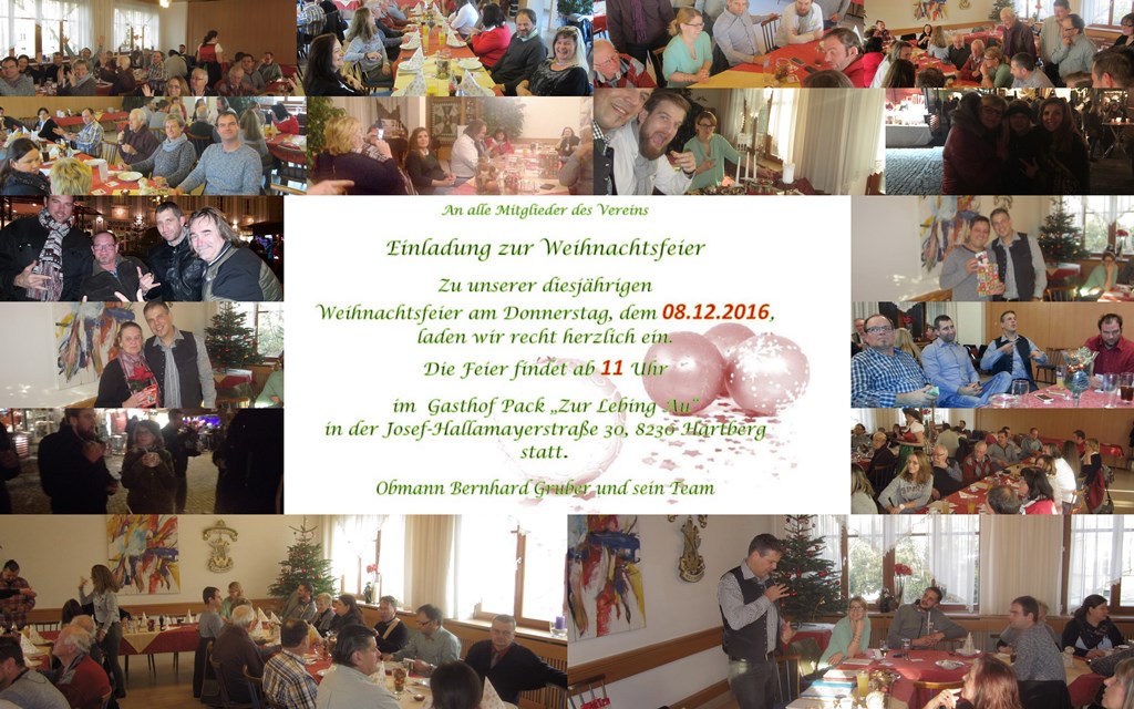 des Vereins - Weihnachtsfeier, am 8.12.2016 im GH Pack |